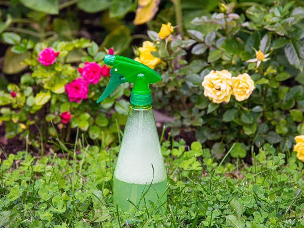 A simple soap solution can suffocate soft-bodied insects like aphids, mealybugs, and spider mites.