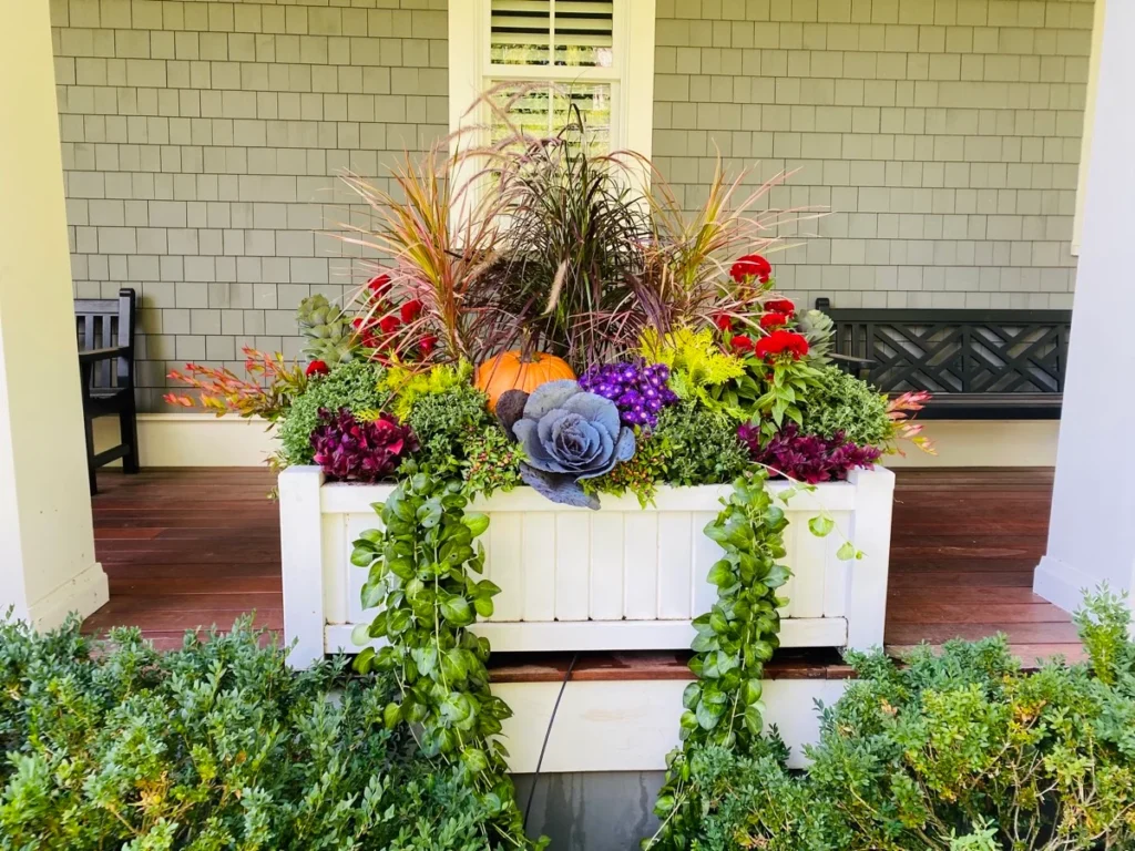 - Autumn/Winter: Replace seasonal flowers with evergreens, ornamental grasses, or hardy shrubs for structure.