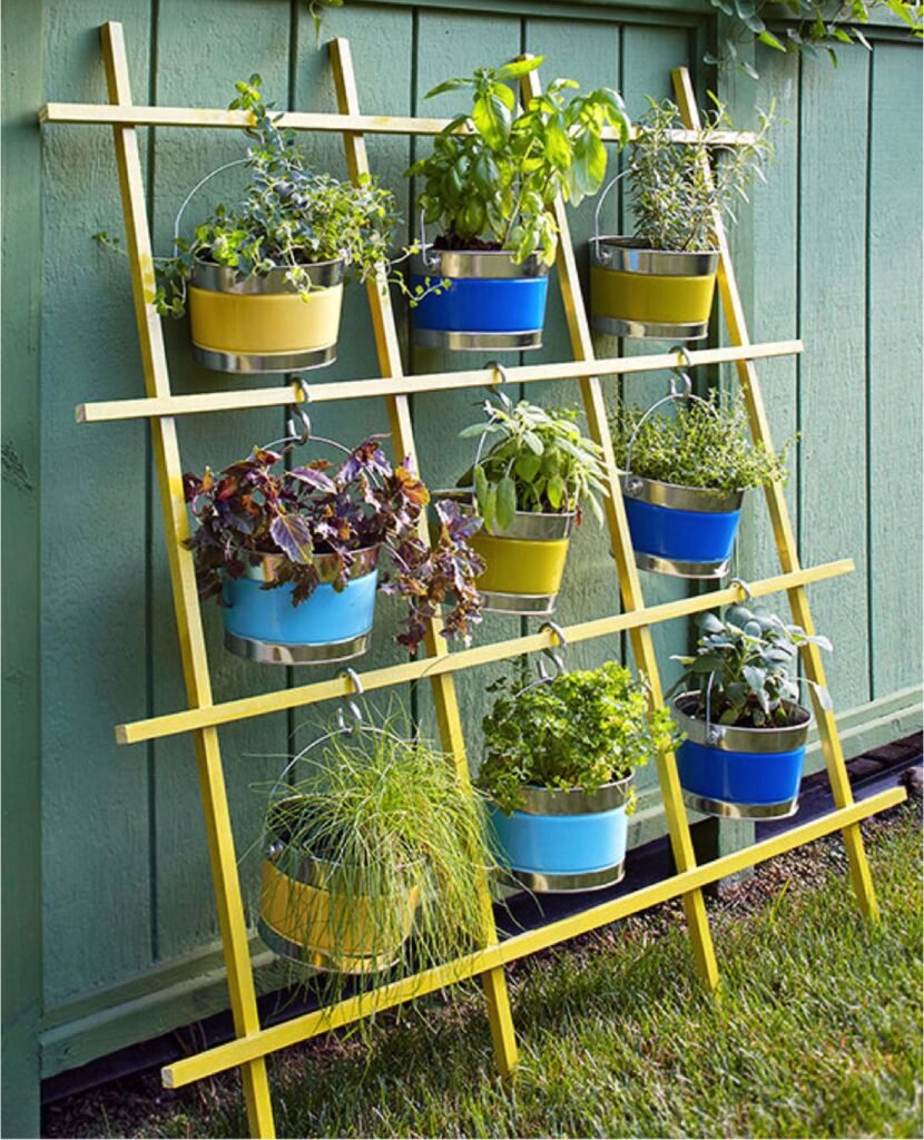 - Metal Grids or Trellises: Hang pots or fabric planters on hooks attached to a sturdy frame.