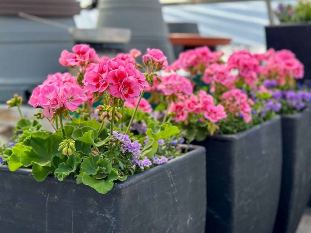 - Geraniums: Bushy growth, tolerant of partial sun, and long-lasting flowers.