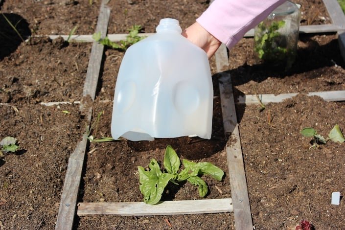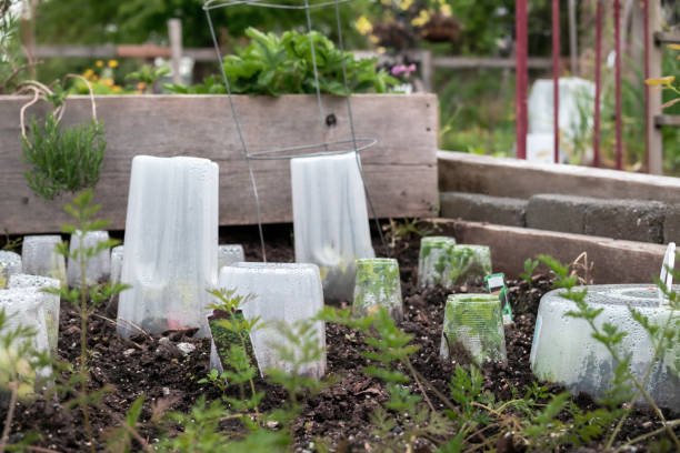 - DIY Cloche: Use clear plastic bottles, jars, or cut-up containers to cover small plants.