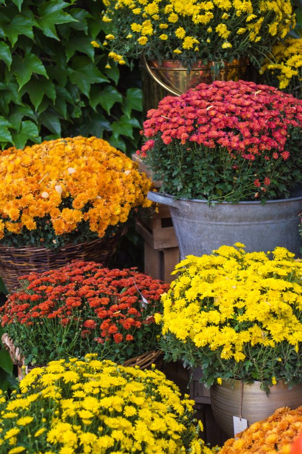 Mums can be used in garden beds, container arrangements, or as cheerful front-door displays. Their dense, colorful blooms are the epitome of fall vibrancy.